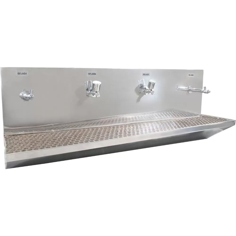 CUBA INOX Dimensões CUBA DE INOX Largura: 25cm Profundidade: 14cm Comprimento: 1.18cm 4 torneiras Espelho: 30cm Altura 44 CM Largura 25 CM Comprimento 118 CM Peso 31.00 KG